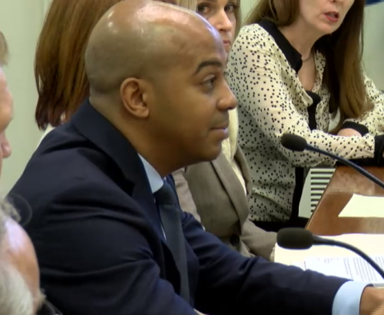 regg Duerson, son of Dave Duerson, 1985 Chicago Bear who committed suicide at the age of 50 to donate his brain to the Boston University School of Medicine, testifies before House Mental Health Committee March 1